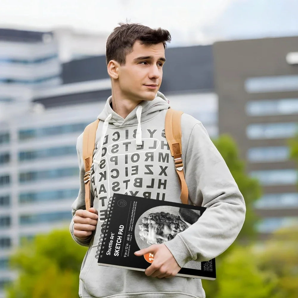 260 SHEETS VALUE SET: Shuttle Art sketch books set contains 2 pack of 9”x12” sketch pads, 130 sheets of each, total 260 sheets. With 68lb/100gsm drawing paper, you can draw, sketch, doodle and color either at home or on the go. Perfect art paper for drawing and painting