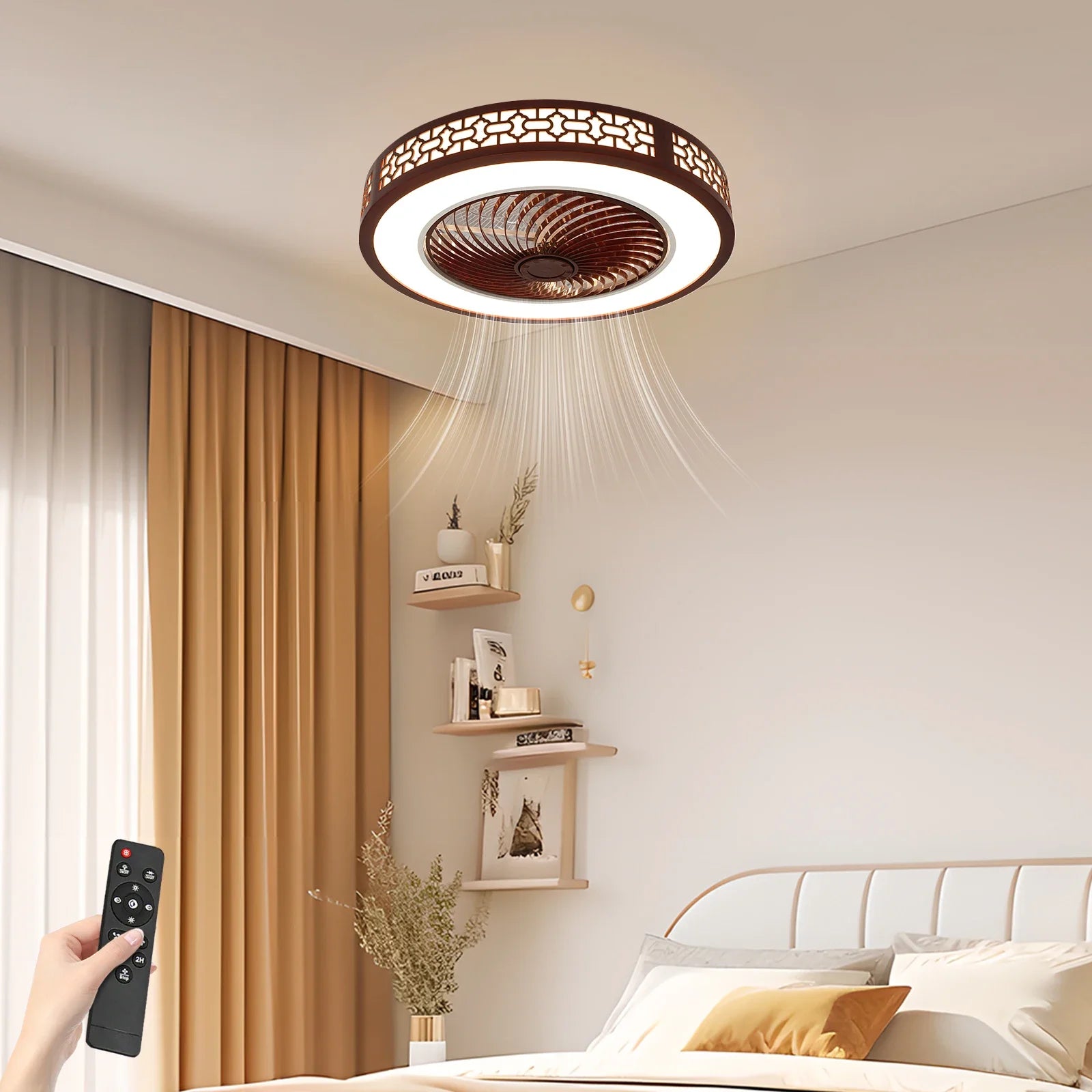 22 Inch Adjustable Wind Speed Ceiling Fan Light Classical LED 3 Colors Lighting + RC