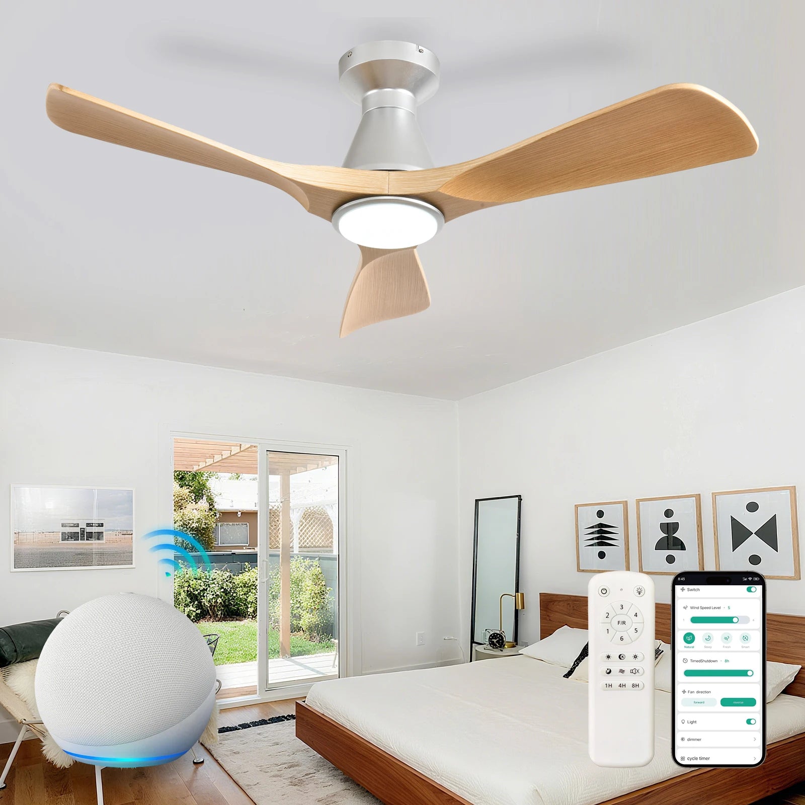 【Smart Voice & App Remote Control】The 42/52 inch 3 blade ceiling fan is with remote control (includes wall bracket) and smart control compatibility. You could control ceiling fan via Alexa, Google Assistant, or dedicated app for completely hands-free operation! Use your voice to activate cooling instantly!Reach us for remote replacement or usage support