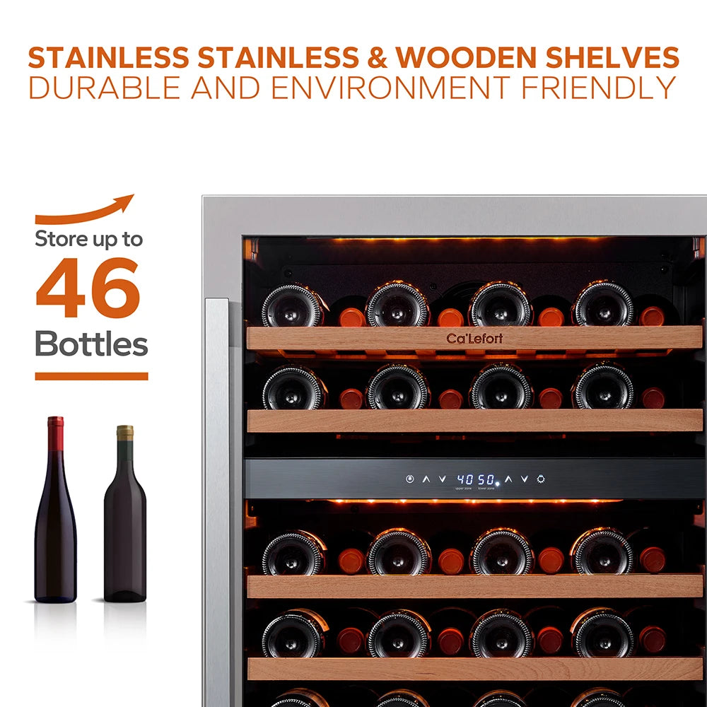 This Compressor Wine Cooler offers exceptional storage capacity and precise temperature control, making it perfect for family gatherings or personal enjoyment. This cooler accommodates up to 46 standard Bordeaux 750ml wine bottles, plus various non-standard bottles and 12oz beverages. With a temperature range of 5-18℃ (40-65℉) (default 54℉), it ensures each bottle is stored at optimal conditions, preserving taste and freshness.