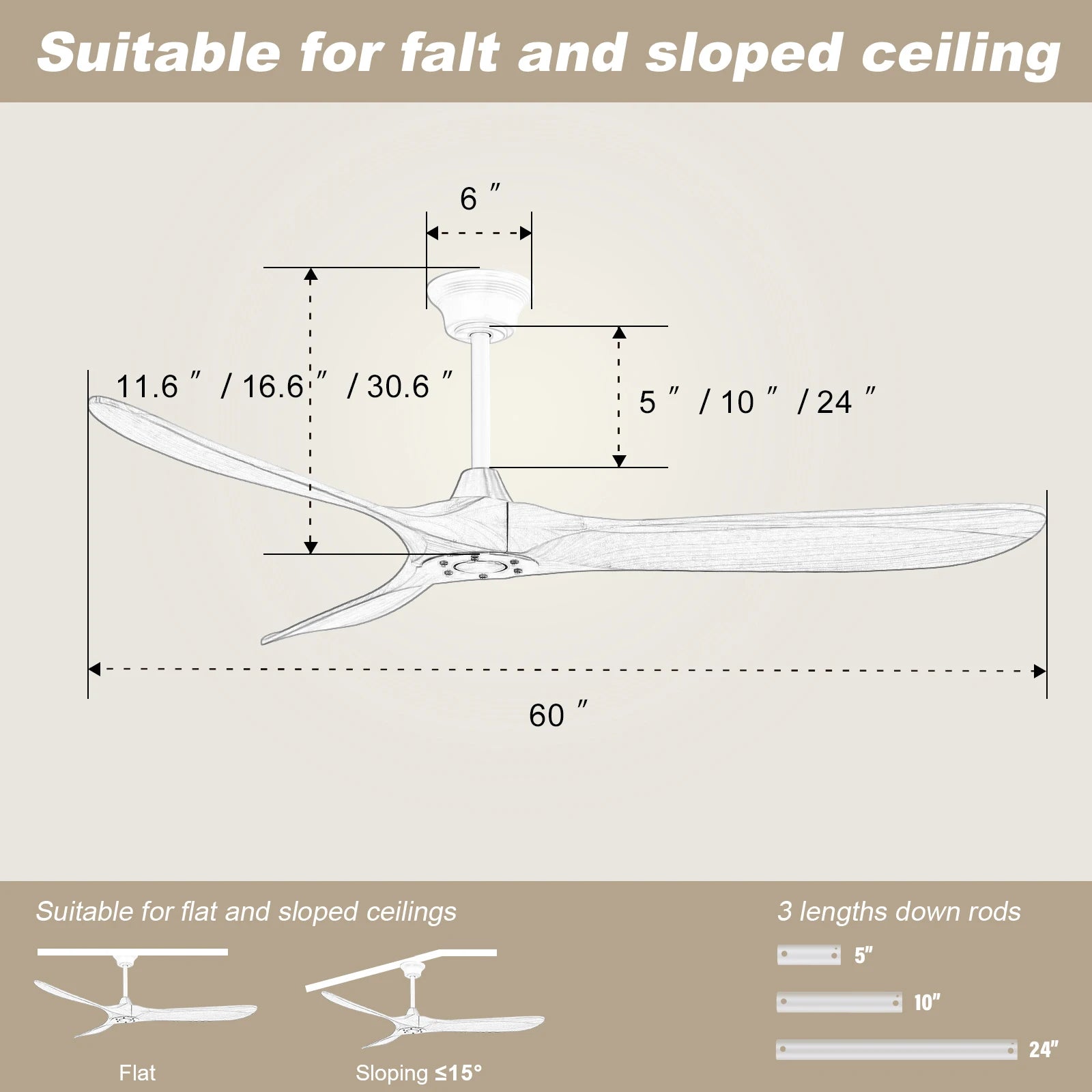 Comes with 3 Downrods: 5''/10''/24'' downrod. Easy installation. Enjoy the dynamic hanging capabilities of a multi-position ceiling fan. This fan can be hung standard with a different length downrod (included) or on angled ceilings (≤15°)