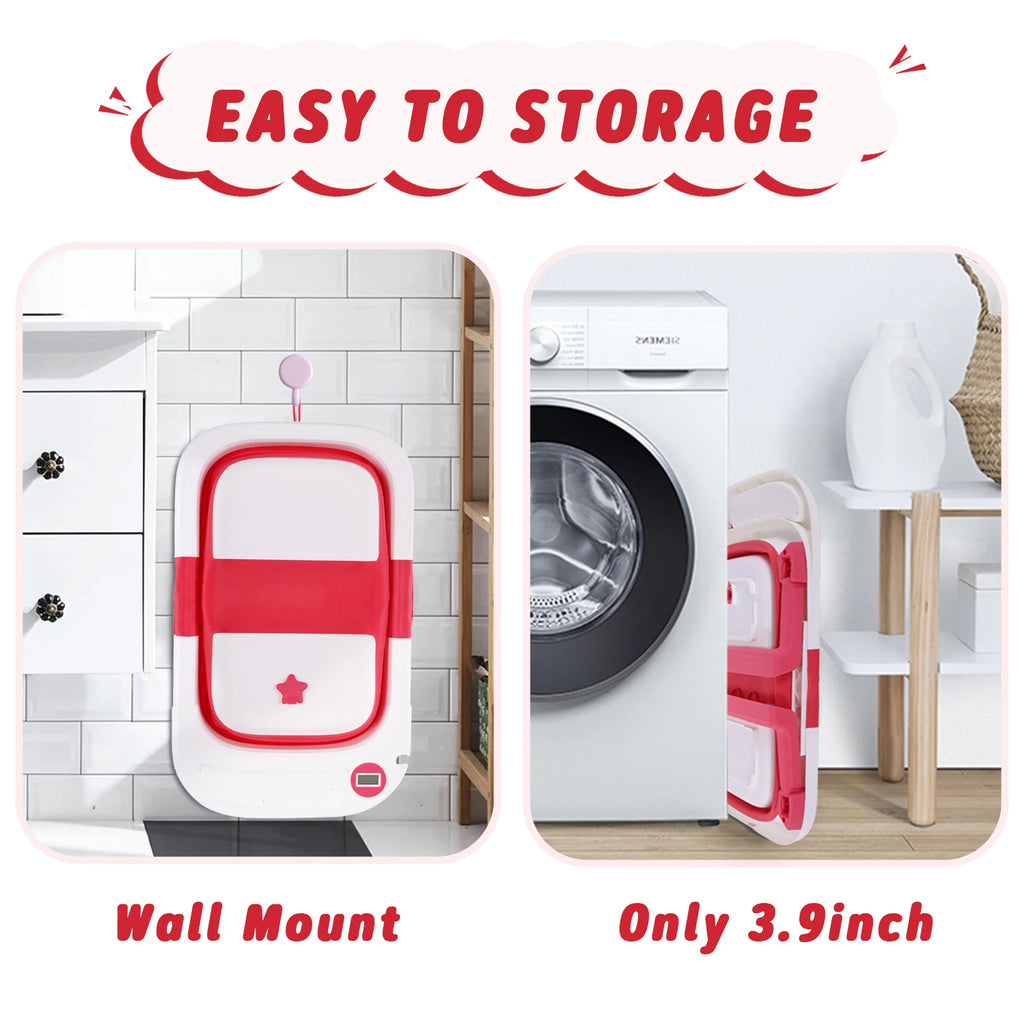 Baby Bathtub with Soft Cushion & Thermometer for Newborn to Toddler 0-36 Months, Portable Baby Tub