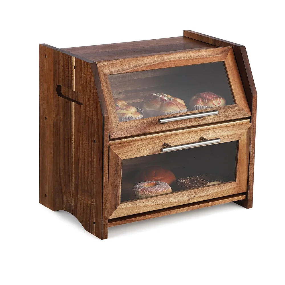 Reliable Construction: Constructed from premium acacia wood, this countertop bread storage bin guarantees lasting use and reliable performance. The smooth magnetic closure ensures effortless operation and prevents accidental openings.