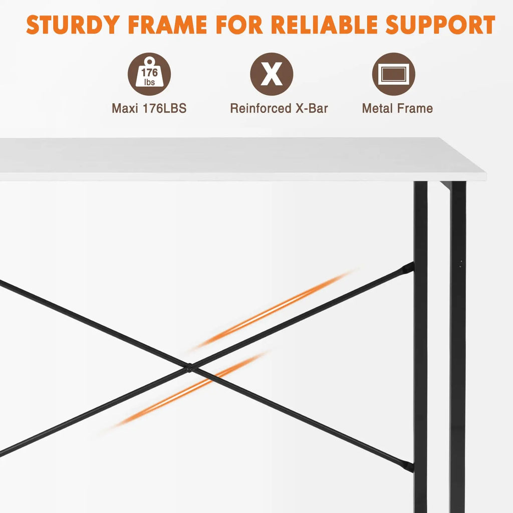 High-Quality Desig: The writing desk is made of high-quality materials. The desktop is made of thick particle board, which is resistant to scratches, water, and damage, making it easy to clean. The metal frame and corner reinforcement structure provide reliable support for all day use, weighing up to 176 pounds.