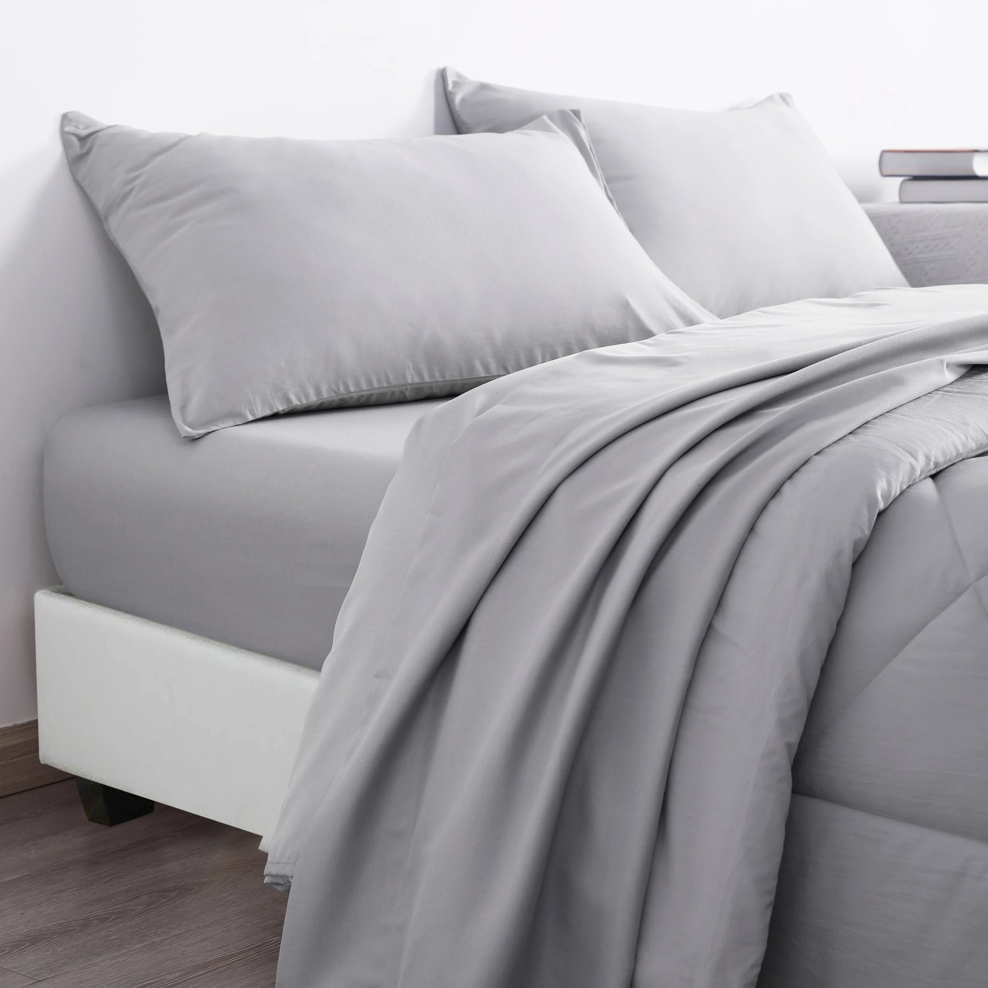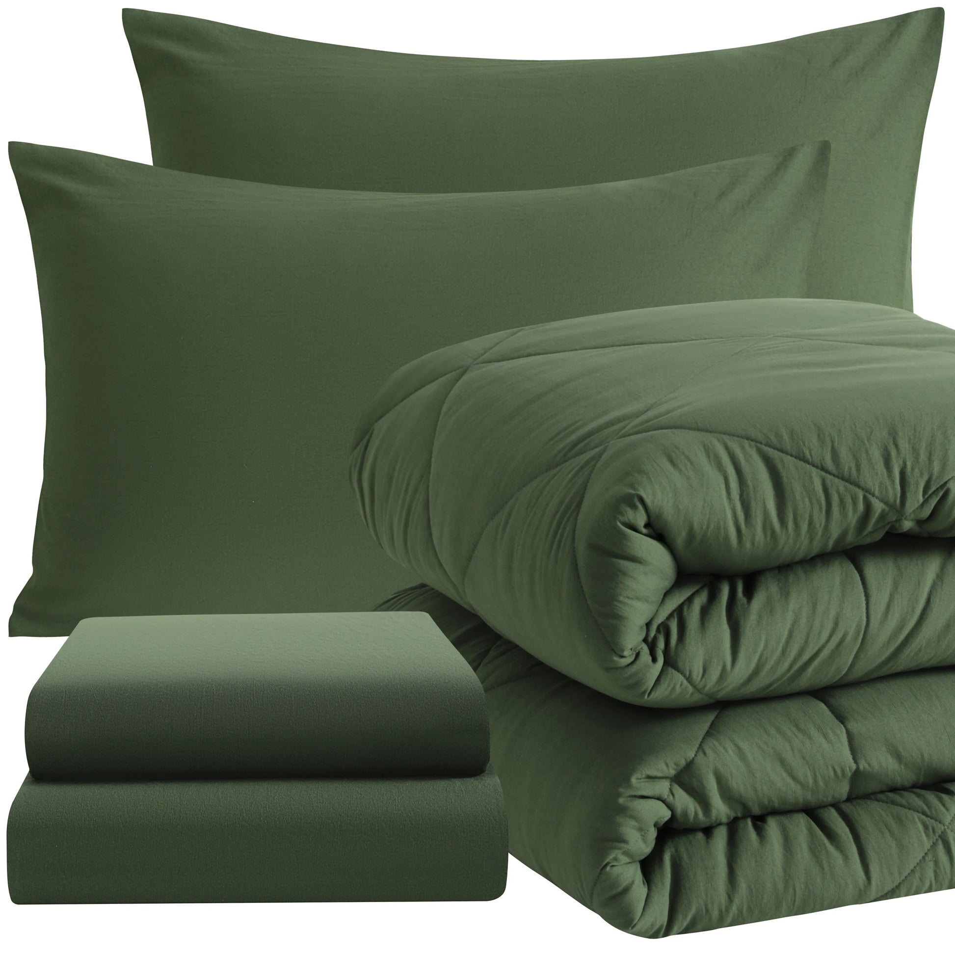 The package includes: 1 Comforter + 1 Fitted Sheet + 1 Flat Sheet + 2 Pillowcases (Pillows are not included)
