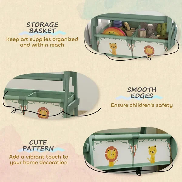 Storage Baskets: This kids' painting easel has two baskets, providing a designated space for keeping art supplies organized and within reach. They add convenience and tidiness to your child's creative corner, making cleaning quick and simple.