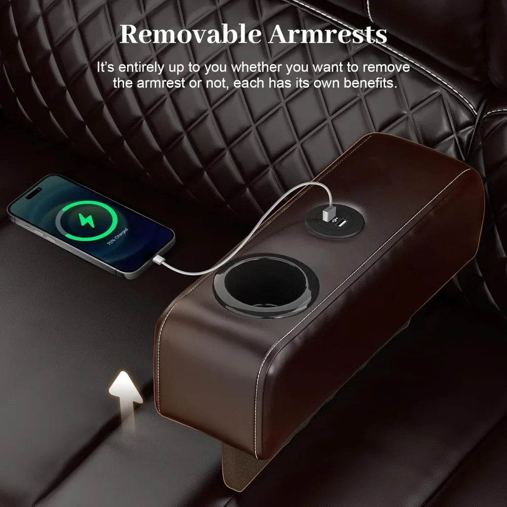 Removable Armrest: In order to meet the customized needs of more users, the middle armrest of our recliner love seat can be easily disassembled. Installing the armrest can provide you with additional cup holders and 2 USB charging ports, making the entire sofa more functional. Of course, dismantling it also has its benefits, as the space is more spacious and you are closer to your loved one without being hindered.