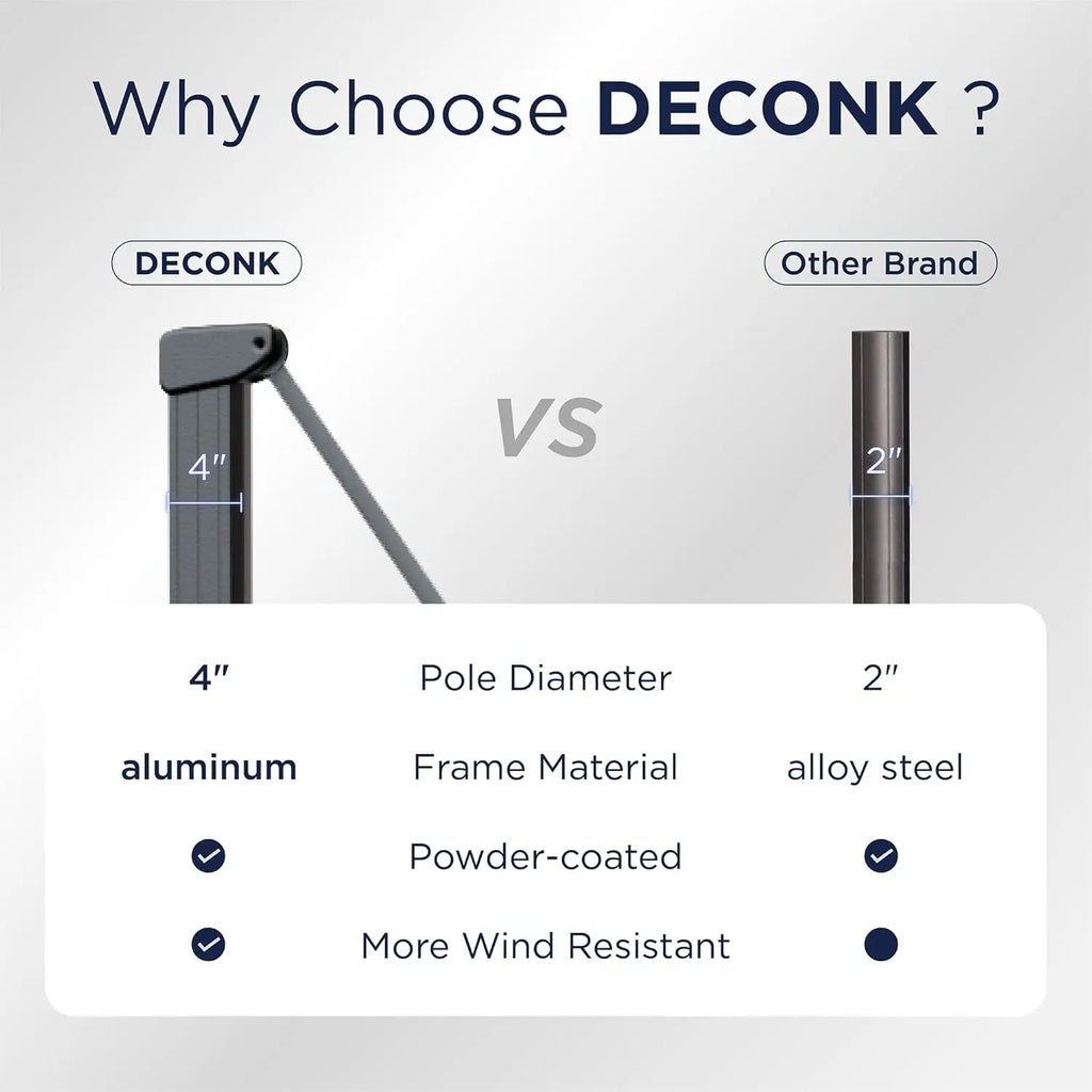 360°Rotation and Tilt Adjustable: Use the foot pedal to rotate the cantilever umbrella 360 degrees and adjust the height of the canopy arbitrarily; Perfect for ergonomic comfort, providing optimal sun protection throughout the day