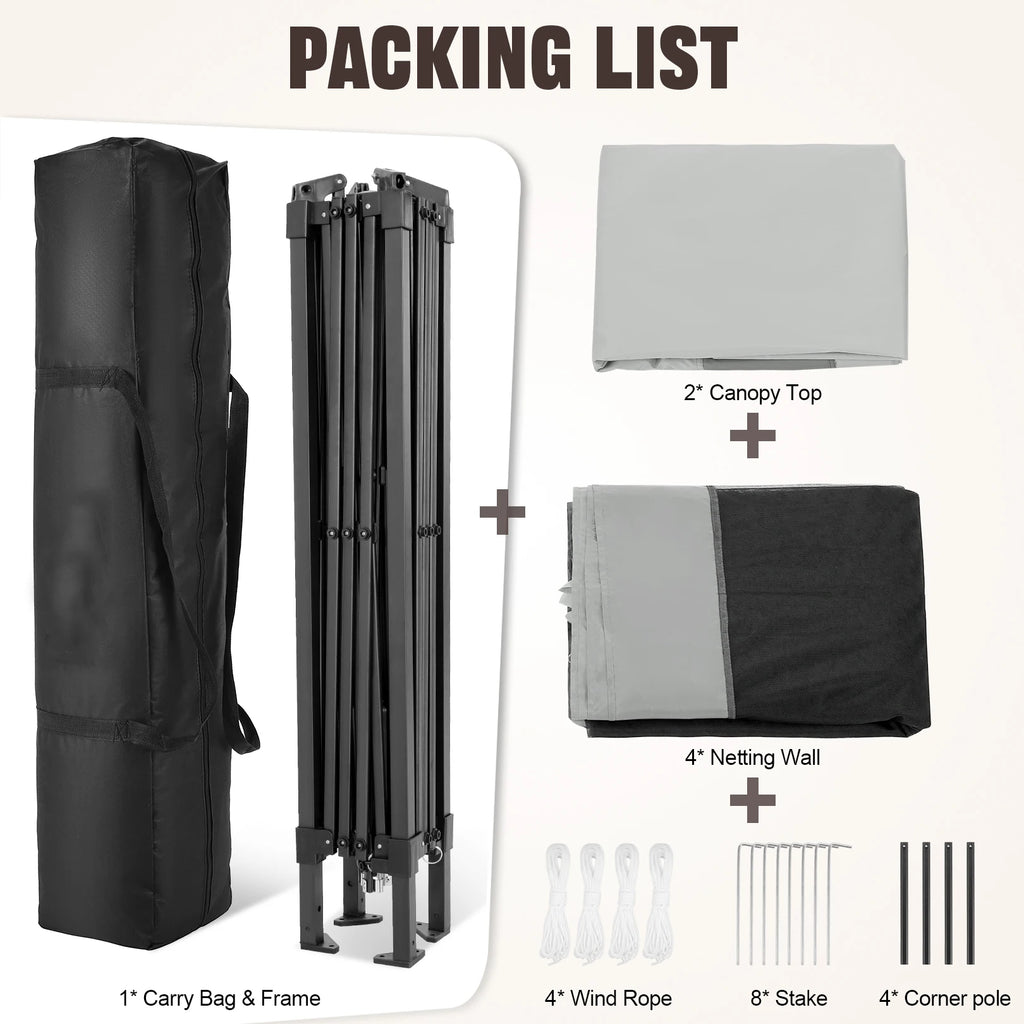 【Easy set up & Pinch-free setup】This easy-up gazebo tent can be assembled without extra tools for one person in 10 min, gazebo has 3 heights setting 98.4in/250cm, 102in/260cm, 105.6/270 cm (the roof to the bottom), comfort grip locks canopy in places when extend poles, and equip detailed installation videos and manuals for guidance.