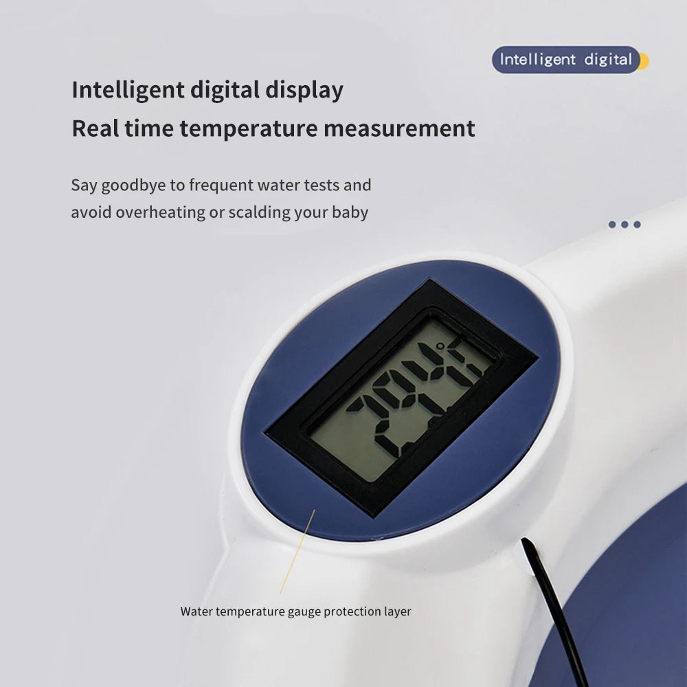 *Water temperature regulation: The baby bathtub is equipped with a temperature sensor and a thermosensitive drain plug, and the temperature sensor requires two LR44 button batteries.