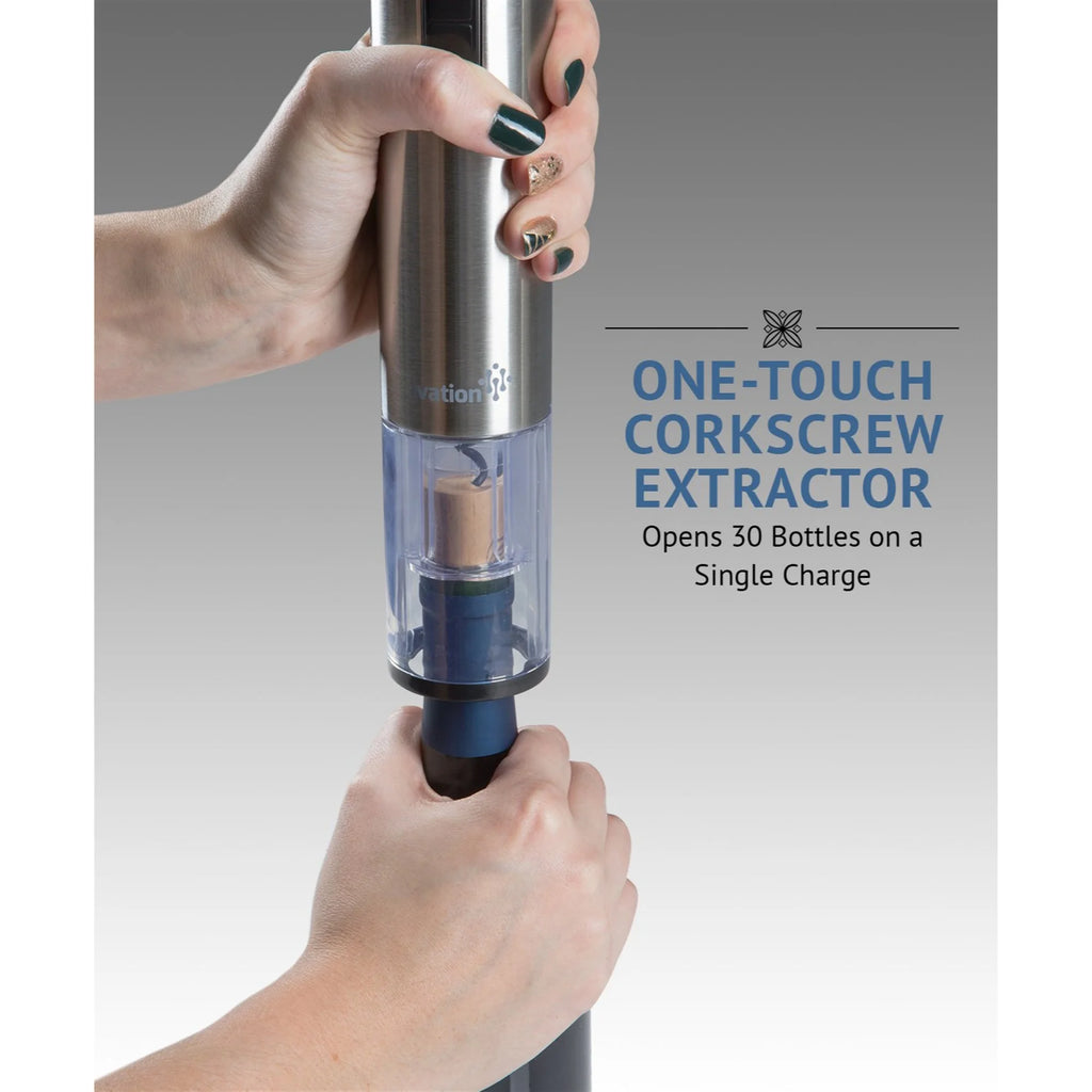 Electric Wine Opener: One-touch operation highlights this stainless-steel corkscrew extractor. Complete with an integrated see-through window, it can uncork up to 30 wine bottles on a single full charge.