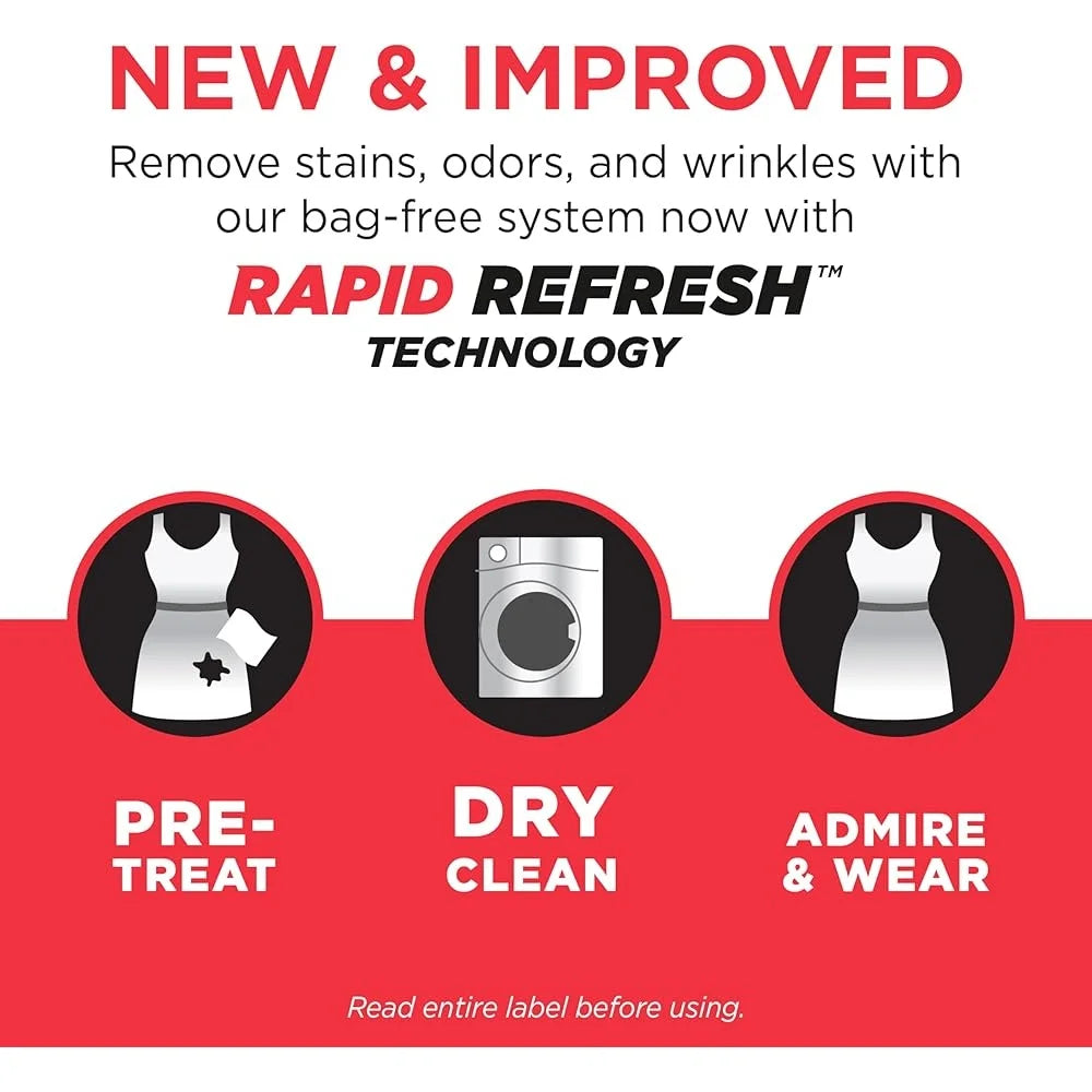 Effective Cleaner: Lifts away stains, odors, and wrinkles leaving clothes clean, refreshed, and ready to wear. It takes about 20 minutes to complete in your dryer and costs a fraction of the cost of professional dry cleaners.